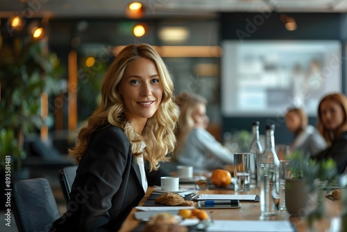 woman, female, business, professional, leader, executive, entrepreneur, boss, meeting, boardroom, team, presentation, projector, screen, office, workplace, interior, design, furniture, technology, communication, discussion, brainstorming, planning, strategy, corporate, success, achievement, confidence, leadership, determination, career, lifestyle, fashion, style, elegance, blond, blue, eye, portrait, smiling, looking, atmosphere, mood, ambience, ceo, director, manager, adviser