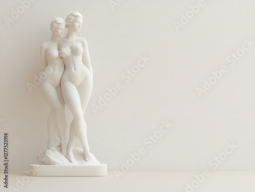 Inspiring Female Figures in Realistic Style - Elegant White Sculpture Depicting Unity and Strength in Minimalist Space