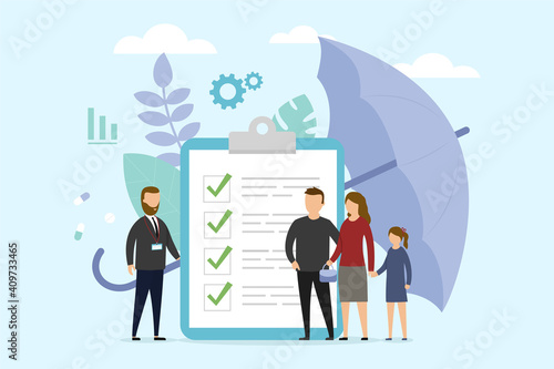 insurance, document, health, estate, money, vector, cartoon, flat, family, manager, protect, signature, check, mark, umbrella, save, safe, deal, talk, racked, official, accurateness, list, profit, advert, promote, care, life, contract, person, support, finance, business, children, man, service, illustration, safety, medicals, investment, medicine, policy, security, risk, form, plan, help, paper, payment, woman
