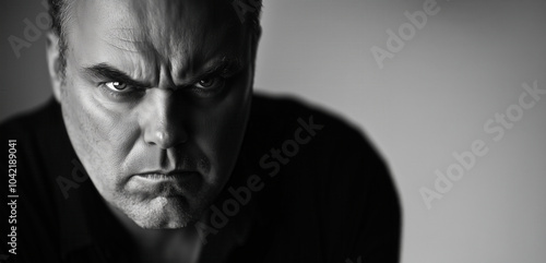 Intense angry man portrait in black and white, AI generated