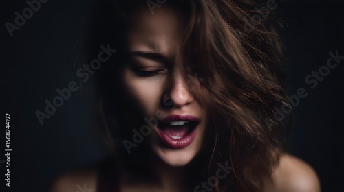 woman, expression, pain, dramatic, intense, lighting, face, emotion, anguish, dark, mysterious, vulnerable, powerful, moody, contrast, shadow, portrait, closeup, beauty, hair, texture, lip, eye, skin, female, human, character, intensity, tension, distress, suffering, agony, strength, drama, captivating, striking, high-coloured, expressive, moving, cinematic