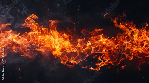 Intense Fire Flames on Black Background - Fiery Energy and Heat Concept