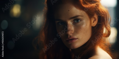 redhead, woman, portrait, intense, gaze, eye, dark, dramatic, moody, beauty, female, face, skin, freckle, hair, natural, lighting, emotional, thoughtful, mysterious, captivating, alluring, enigmatic, contemplative, pensive, striking, mesmerizing, soulful, introspective, hypnotic
