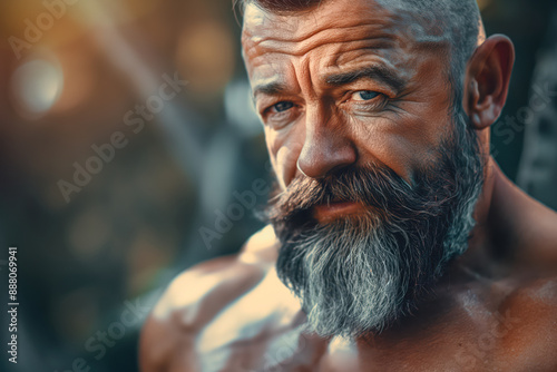 Intense Portrait of Muscular Man in Nature