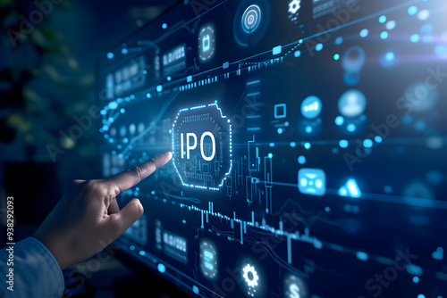 Interactive Touchscreen Tech: Smart Home, Cybersecurity, and Digital Interfaces in Modern Business. Person Pushing 'IPO' on a Touchscreen Interface. HD Landscape Wallpaper for Desktop PC