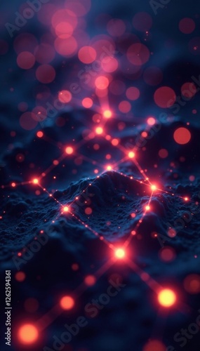 Interconnected glowing dots, complex network structure , matrix, complex, science