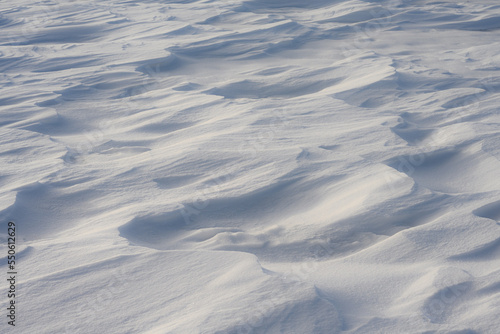 Interesting snowdrift patterns with blue cast shadows caused by a late day sun.