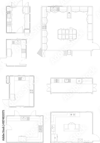 Interior Design Drawing of Kitchen Layouts in Various Design Styles with Furniture Plan 7design