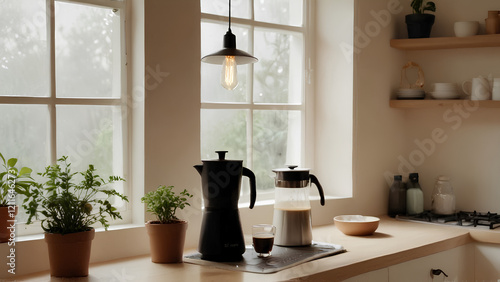 hot drink, cup, drink, espresso, breakfast, aroma, window, interior, room, house, home, curtain, architecture, kitchen, table, wood, apartment, decoration, counter, living