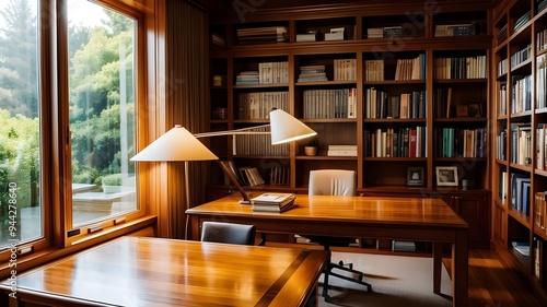 room, interior, table, chair, office, furniture, desk, home, design, wood, classroom, library, study, shelf, school, business, book, empty, book, education, cabinet, nobody, decor, window, eatery
