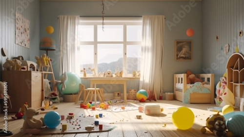 Interior of childrens room with kid toys. Presentation for background. Generative Ai