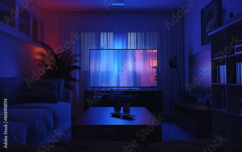 monitor, no people, interior design, darkness, glow, leisure, comfort, home, modern, sofa, room, night, furniture, decor, interior, evening, lamp, apartment, comfortable, light, living, rest, table, nobody, indoor, design, dark, flat, background, couch, cosy, style, wall, contemporary, house, studio, fashion