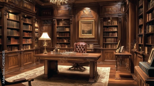 library, book, wood, study, room, bookshelf, desk, chair, classic, vintage, antique, dark, brown, wooden, opulent, luxury, rich, elegant, sophisticated, grand, formally, reading, cognition, intellectual, contemplation, furniture, interior, design, decor, home, office, traditional, literature, learning, wisdom, calm, serene, peaceful, haven