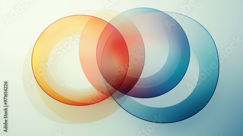 Interlocking circles and arcs. Geometric shapes in glass morphist style. Abstract vector design elements. 3D generative ai