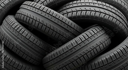Interlocking Tires A Stacked Pile of Automotive Essentials for Vehicle Maintenance