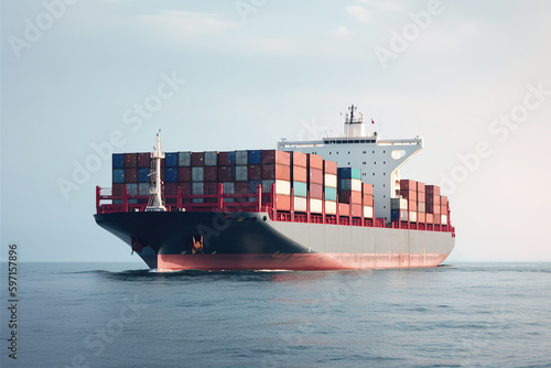 International container cargo ship, freight transportation, shipping, nautical vessel, generative ai.
