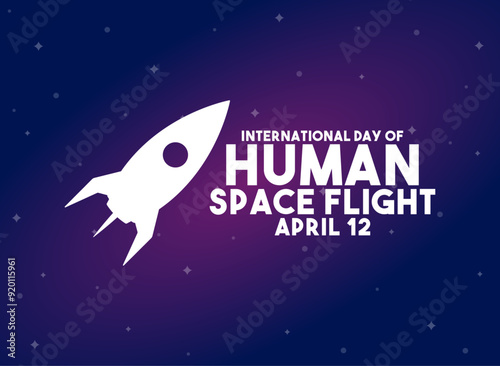 International Day of Human Space Flight. April 12. Gradient space background. Poster, banner, card, background.