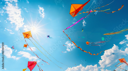 International Kite Day: Brightly Colored Kites Flying High Representing Freedom and Joy