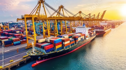 International shipping routes overlaid on world map, cargo ships and distribution centers highlighting instant logistics.