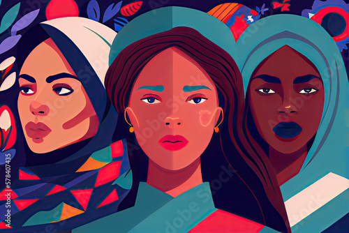 International Womens Day. Vector illustration with women different nationalities and cultures