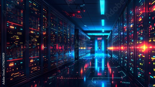 cyberspace, infrastructure, server room, light, network, equipment, core, vector, illustration, technology, communication, server, room