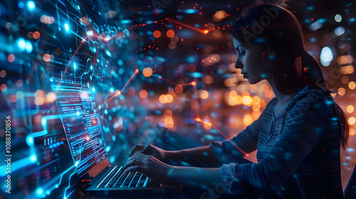Internet network technology, digital software development future tech background, IoT concept, Business people using modern laptops surfing internet futuristic metaverse and innovat