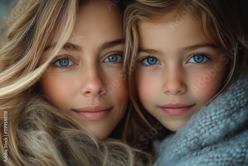 intimate mother-daughter portrait in soft natural window light, gentle embraces and genuine smiles, cozy home setting with warm neutral tones