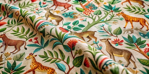 Intricate Animal Print Linen Fabric Texture - Aerial Photography Stock Photo