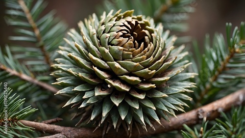 Intricate Beauty: Close-Up of a Wollemi Pine Cone Nestled Among Pine Needles