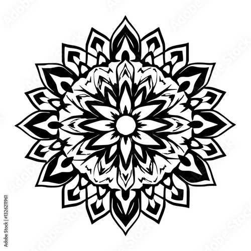 vector, mandala, floral, pattern, symmetry, black, white, design, ornament, geometric, spiritual, meditation, zen, art, illustration, decorative, circular, flower petals, flower, circle, bold, graphic, contour, abstract, delicate