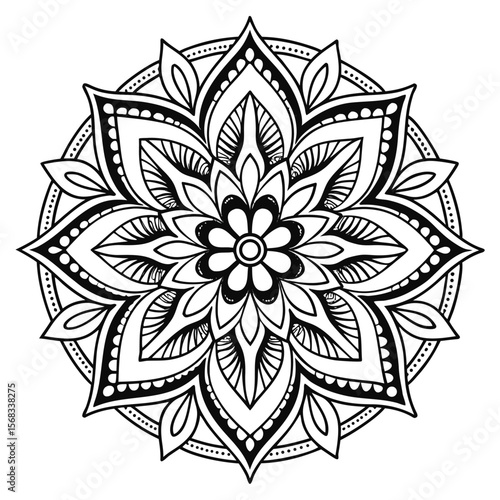 Intricate Black and White Mandala Design Floral Pattern for Coloring, Art, and Meditation