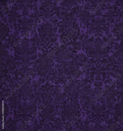 Intricate black damask on deep purple, seamless repeat , design, elegant, background