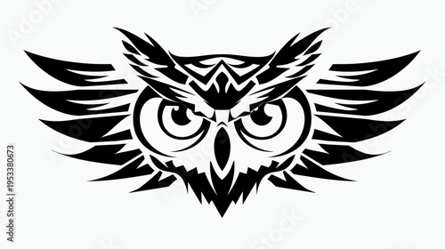 owl, bird, wing, black, white, illustration, vector, graphic, design, art, isolated, symbol, ornament, pattern, geometric, abstract, silhouette, wildlife, nature, eye, head, feather, texture, shape, decorative, creative, concept, element, print, image, artwork, background, stylised, animal, digital, tattoo, culture, tribal, elegant, beauty, dark, minimalist, modern, widener