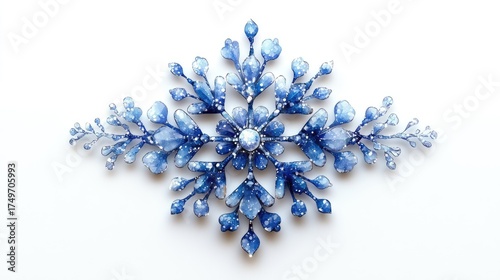 Intricate blue snowflake design, isolated on white background.
