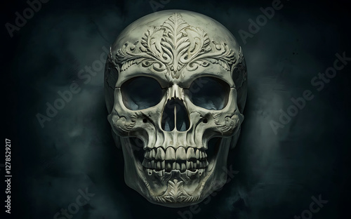 Intricate Carved Skull with Ornate Patterns.