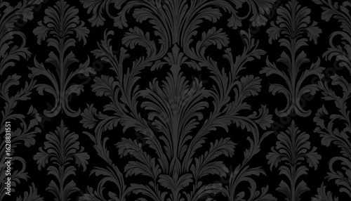 damask, pattern, design, floral, ornate, baroque, black, grey, texture, wallpaper, fabric, textile, background, graphic, elegant, luxurious, opulent, rich, vintage, classic, symmetric, repeating, decorative, artistic, sophisticated, design element, monochrome, motif, patterned, intricate, detail, seamless, vector, illustration, digital, art, fabric design, interior design, luxury, background