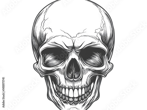 Intricate Detailed Skull Illustration Dark Grey Hues Graphic Design Element