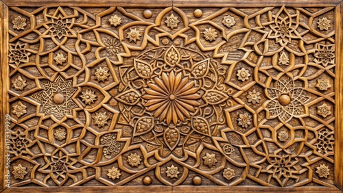 Intricate floral and geometric patterns on a wooden panel , decorative, floral, decorative, floral, geometric
