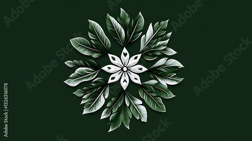 floral, leaf, mandala, green, white, flower, design, illustration, botanical, symmetric, pattern, artwork, nature, art, graphic, foliage, ornament, elegant, vintage, aesthetic, circular, decor, vegetation, composition, stylised