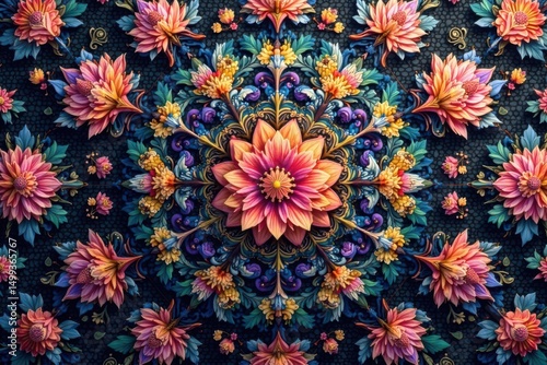 Intricate floral motif within a repeating hexagonal grid , leaf, trendy, geometric
