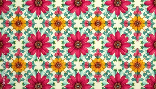 Intricate floral pattern, repeating seamlessly , loop, graphic, fabric
