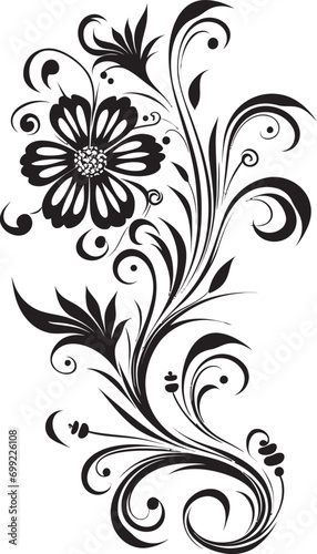Intricate Floral Scroll Black Icon Design Artisanal Petal Flourish Vector Logo
