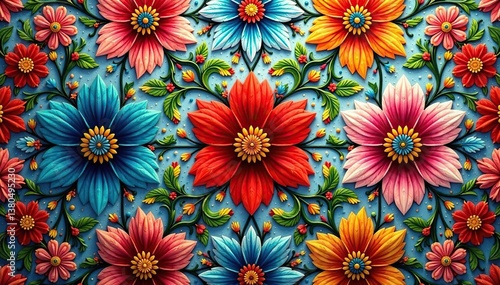 Intricate floral textile design, repeating motif, art, aesthetic, surface