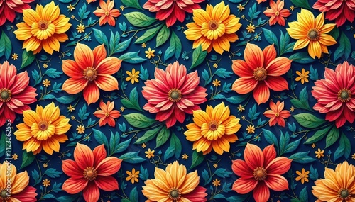 Intricate floral textile design, repeating seamlessly , motif, modern, background