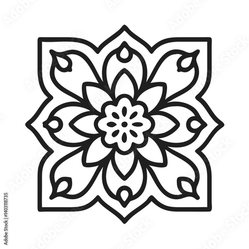Intricate floral vector art for coloring books and creative projects symmetrical flower illustration, mandala vector design