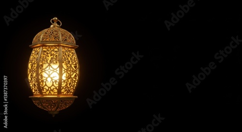 lantern, ramadan, islamic, festive, decoration, gold, metal, light, glow, illuminated, intricate, design, pattern, arabesque, culture, religion, holiday, celebration, hanging, lamp, vintage, traditional, ornamental, elegant, art, craft, moroccan, arabian, eastern, dark, background, black, night, warm, gold, bright, detail, object, style, image, photo