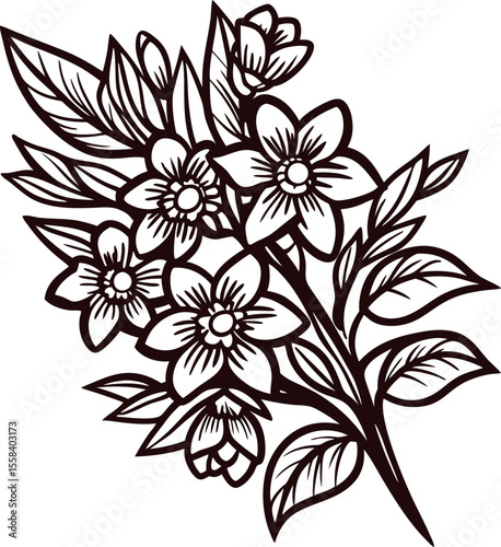vector, floral, bouquet, illustration, hand, drawn, flower, leaf, nature, art, decorative, black, white, detailed, outline, blossom, spring, summer, elegant, botanical, design, vintage, vignetting, flora, plant, garden, ornament, graphic, leaf, arrangement, bloom, beautiful, intricate, foliage, traditional, line, classic, creative, stylised, organic, bunch, aesthetic, centrepiece, monochrome, delicate, inspiration, artistry, composition