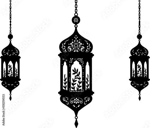 lantern, islamic, arabic, moroccan, traditional, ornate, intricate, hanging, decorative, silhouette, black-and-white, ramadan, eid, festival, celebration, light, lamp, oriental, middle eastern, pattern, design, graphic, vector, illustration, elegant, vintage, antique, mystic, spiritual, architecture, culture, ornament, detailed, classic, artistic, home decor, party, event, wedding, mosque, masjid, prayer, holy
