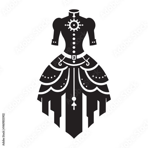 Intricate lace steampunk dress silhouette – steampunk dress silhouette – steampunk dress vector – steampunk dress illustration – ladies dress silhouette – silhouette of steampunk dress