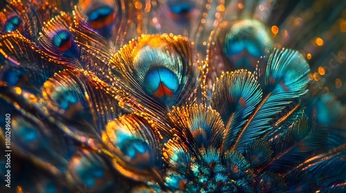 macro, peacock, intricate, photo, grand, colourful, feather, mesmerizing, pattern, nature, display, closeup, vibrant, art, wildlife, beautiful, detailed, ornate, feature, alive, plumage, elegance, iridescent, dynamic, texture, light, spectrum, creativity, charming, dazzling